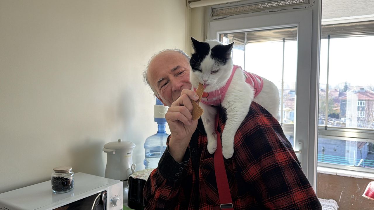 Kedisi Sylvia’yı bir an bile yanından ayırmayan Mustafa Rahmi Erçetin, “12 yıl önce Bursa’nın Bademli köyünde bahçede oturuyordum, karşımda sağlık ocağı vardı. Balkonda otururken ufacık kedi gördüm. Avucum kadar bir şeydi. Sağlık ocağının kapısına geldi, geri döndü. İçim sızladı. Yakaladım ve eve getirdim. Şu an 12 yılın içindeyiz, 12 yıldır benimle. İnsanların çok dikkat ettiği, şaşırdığı imrendiği olay şu. ‘Ağabey, Sylvia’yı nasıl alıştırdın? Nasıl omzunda geziyor? Nasıl eğittin’ soruları oluyor. Bisikletle giderken omzumda görüyorlar, çok ilgi çekici buluyorlar. Büyük bir tebessümle karşılıyorlar. Sorular soruyorlar, ben de anlatıyorum. Sabah kalkarım, Sylvia tuvaletini yapar, mamalarını veririm, hazırlanırız ve giysilerimizi giyeriz. Kışsa şapkalarımızı takarız, yazsa ona göre yazlık elbiselerimizi giyeriz. Kreasyonumuz geniştir. Bazen yürüyerek, bazen ise bisikletimle giderim. Kafelere, restoranlara gider, yemeğimizi de yeriz” dedi.