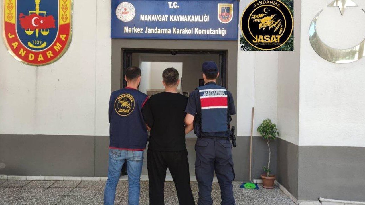 Manavgat Cumhuriyet Başsavcılığı talimatları doğrultusunda Antalya İl Jandarma Komutanlığı ekipleri, aranan kişilerin yakalanmasına yönelik çalışma gerçekleştirdi. Çalışmalar kapsamında hakkında 'Uyuşturucu veya uyarıcı madde imal ve ticareti yapma veya sağlama' suçundan 14 yıl kesinleşmiş hapis cezası bulunan A.D., Jandarma Suç Araştırma Timi (JASAT) ekiplerince yakalandı.