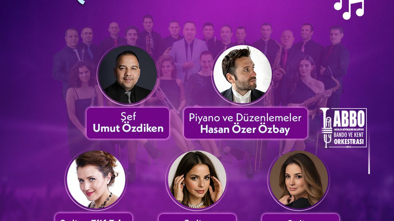 ANTALYA, (DHA)- ANTALYA Büyükşehir Belediyesi Bando ve Kent Orkestrası, müzikseverleri keyifli bir geceye davet ediyor. Atatürk Kültür Merkezi Aspendos Salonu'nda 28 Mart Cumartesi saat 20.30'da gerçekleşecek konser, Sezen Aksu'nun sevilen şarkılarıyla dinleyicilere müzik dolu anlar yaşatacak. Şef Umut Özdiken'in yönetimindeki orkestraya, piyano ve düzenlemeleriyle Hasan Özer Özbay eşlik edecek. Konserin solistleri Elif Eda Saraçlar, Hale Ciğer ve Sılay Erman, Sezen Aksu'nun yıllara meydan okuyan şarkılarına kendi yorumlarını katarak dinleyicilere müzik dolu bir gece yaşatacak. Büyükşehir Belediyesi Bando ve Kent Orkestrası eşliğinde sahneye çıkacak olan solistler, Sezen Aksu'nun sevilen şarkılarını dinleyiciler ile birlikte seslendirecekler. Sezen Aksu'nun sevilen şarkılarıyla dinleyenleri nostalji yolculuğuna çıkaracak konser ücretsiz olarak gerçekleşecek. (DHA)