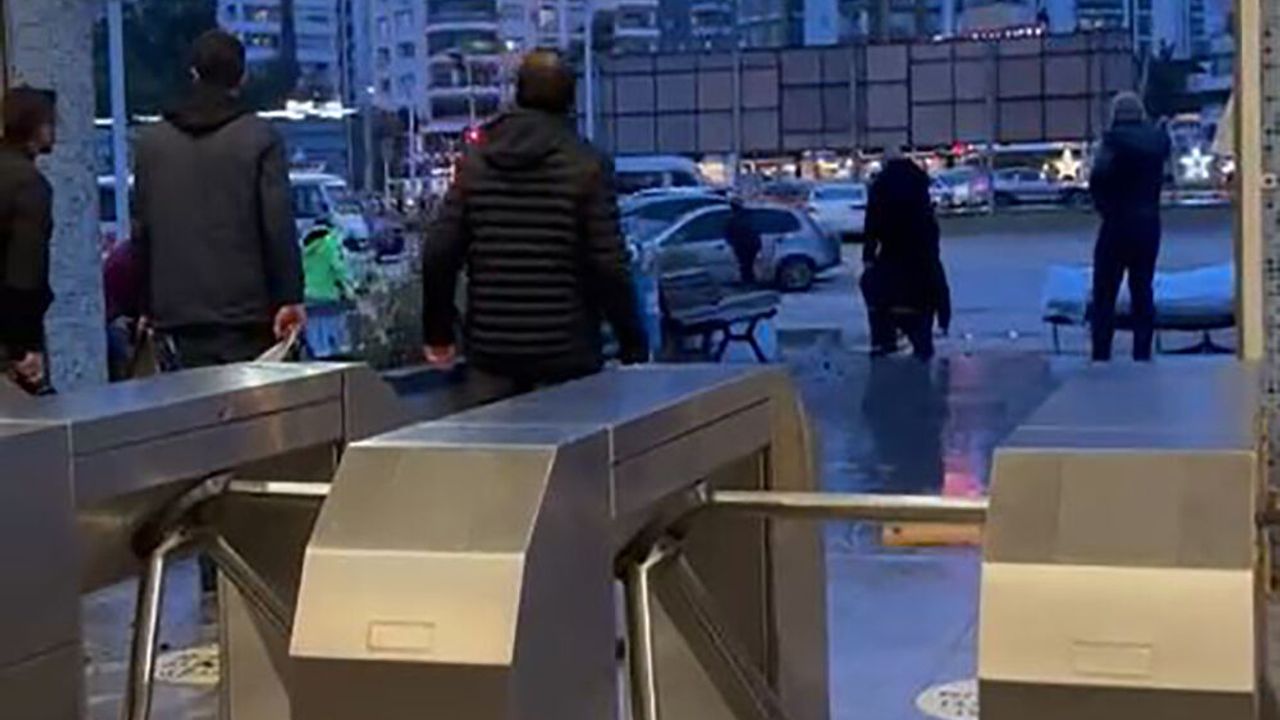 Serhat GÜLER/ ADANA, (DHA)- ADANA'da metro turnikeleri önünde güvenlik görevlileriyle tartışan şüpheliler, taş ve çevredeki eşyaları güvenlik görevlileri ile bölgede bulunan vatandaşlara saldırdı. O anlar, çevredeki bir vatandaş tarafından cep telefonu kamerasıyla kaydedildi.