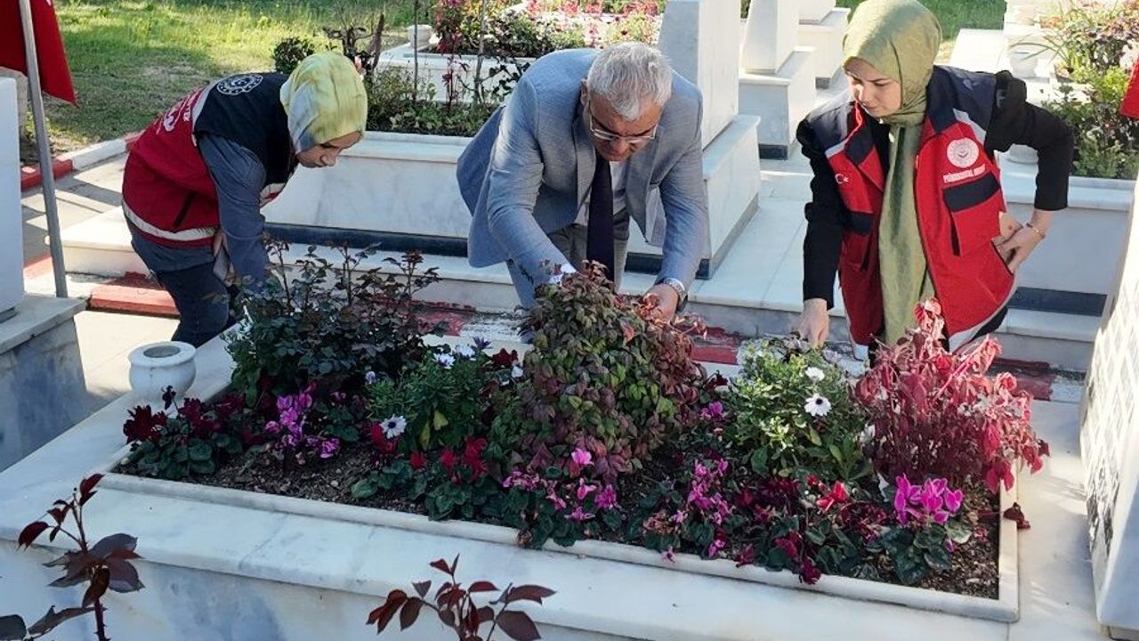 Aile ve Sosyal Hizmetler İl Müdürü Mustafa Gökboğa, şehitlerin milletin en kıymetli emanetleri olduğunu belirterek, 'Aziz şehitlerimiz, vatanımızın birliği ve milletimizin huzuru için en büyük fedakârlığı göstermiş kahramanlarımızdır. Onların hatırasını yaşatmak, kabirlerine sahip çıkmak ve emanetlerine sahip olmak hepimizin ortak sorumluluğudur. Aile ve Sosyal Hizmetler Bakanımız Mahinur Özdemir Göktaş'ın talimatlarıyla 81 ilde eş zamanlı olarak yürütülen bu çalışma kapsamında ilimizde de şehit kabirlerimizin temizlik, bakım ve düzenlemelerini gerçekleştirdik. Aziz şehitlerimizi rahmet, minnet ve saygıyla anıyor; onların emaneti olan ailelerinin her zaman yanlarında olmaya devam ediyoruz' diye konuştu. (DHA)