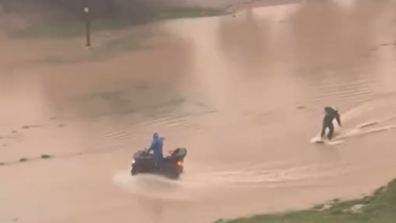 İl genelinde dün akşam saatlerinde etkili olan ve bugün de yer yer kendisini gösteren sağanak nedeniyle bazı caddeler suyla doldu. Merkez Seyhan ilçesi Gürselpaşa Mahallesi'nde sağanak sonrası suyla dolan caddede bir vatandaşın sörf tahtasıyla ilerlemesi dikkat çekti. Su basan caddede vatandaşın sörf yapması, çevredekiler tarafından cep telefonu kamerasıyla kaydedildi. Kamera kaydında vatandaşın, su birikintisi üzerinde bir süre sörf yaptığı görüldü. (DHA)