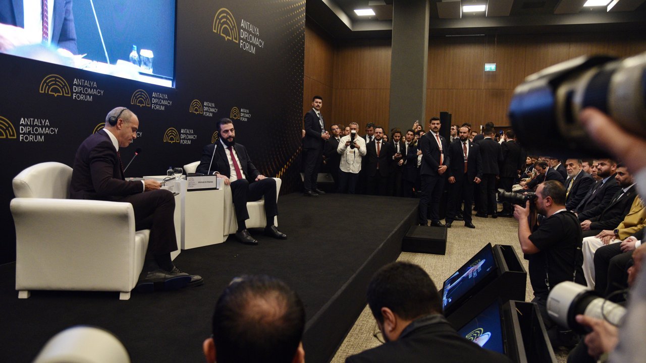 Cumhurbaşkanı Recep Tayyip Erdoğan'ın himayesinde, Dışişleri Bakanlığı'nın ev sahipliğinde düzenlenen Antalya Diplomasi Forumu (ADF2026) başladı. Suriye Arap Cumhuriyeti Cumhurbaşkanı Ahmed Şara da forumda konuşmacı olarak yer aldı. Moderatörlüğünü Alican Ayanlar'ın yaptığı programda Şara, soruları yanıtladı.