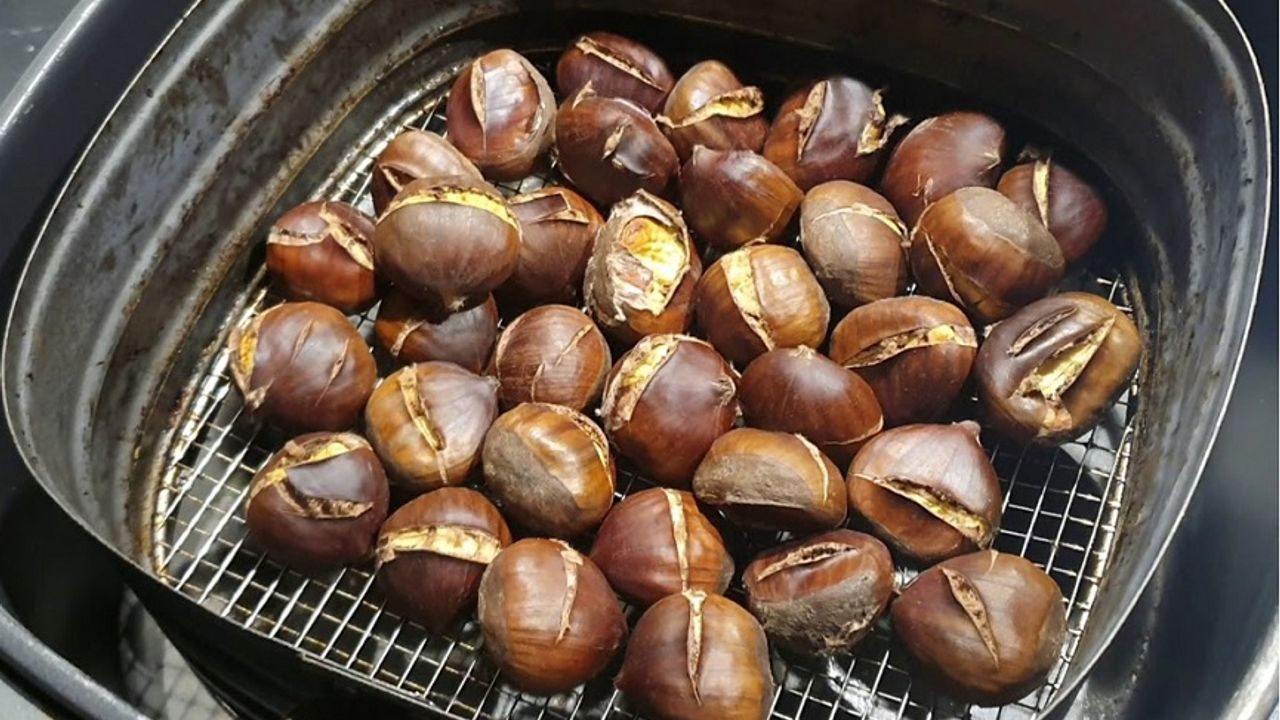 - Kestaneleri airfryer'ın sepetine yerleştirin ve 15-20 dakika pişirin.