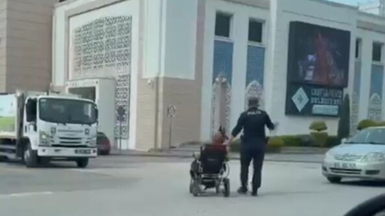 Olay, Musa Şahin Bulvarı Belediye Hizmet Binası kavşağında meydana geldi. Akülü tekerlekli sandalyesiyle yaya geçidinden karşıya geçmek isteyen yaşlı kadını fark eden polis memuru, araç trafiğini durdurdu. Polis memuru daha sonra yaşlı kadının yanına koşarak, güvenli bir şekilde yolun karşısına geçmesine yardımcı oldu. Yaşanan anlar, çevrede bulunan bir vatandaş tarafından cep telefonu kamerasıyla kaydedildi. Görüntülere yansıyan polis memurunun duyarlı davranışı, izleyenlerin takdirini topladı. (DHA)