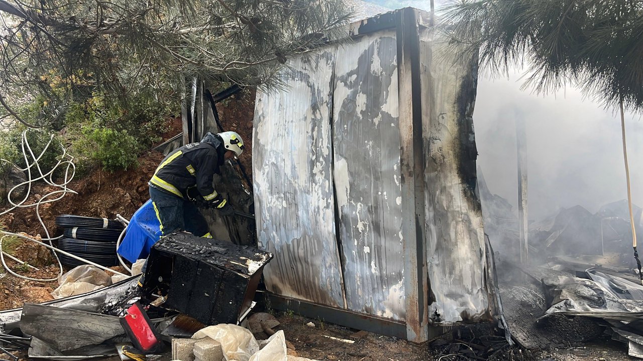 Erkan UYSAL/ALANYA,(DHA)- ANTALYA'nın Alanya ilçesinde inşaat işçilerinin kaldığı konteynerde çıkan yangın, itfaiye ekiplerinin müdahalesiyle söndürüldü.