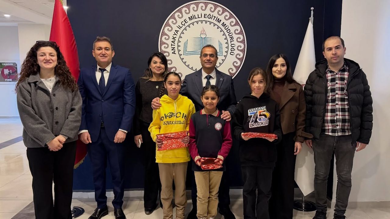 Antakya İlçe Milli Eğitim Müdürü Ahmet Tecimen ve Şube Müdürü Hüdaverdi Yaylacı ilçede düzenlenen 'İstiklal Marşı'nı Güzel Okuma, Resim, Kompozisyon ve Mektup Yarışması kapsamında dereceye giren öğrencilerle bir araya geldi. Tecimen dereceye giren öğrencilere ödüllerini takdim etti. Programda; öğrencilerin milli ve manevi değerlerle bağ kurmalarını, duygu ve düşüncelerini sanat ve yazı yoluyla ifade etmelerini destekleyen çalışmaların önemine vurgu yapıldı. Tören sonunda Tecimen, yarışmalara katılan tüm öğrencileri tebrik ederek emeği geçen öğretmenlere ve okul yöneticilerine teşekkür etti. (DHA)