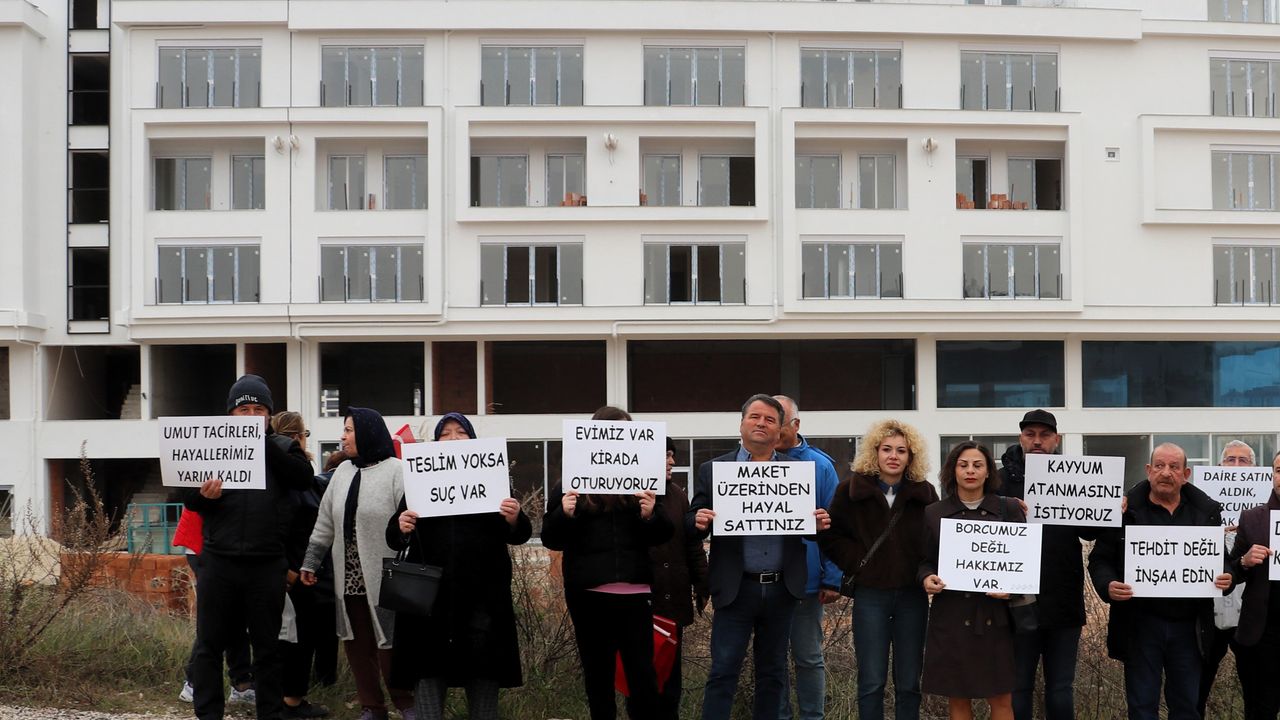 Projeden daire satın alanlardan Habibe Şeker ise hem bireysel alıcıların hem de kooperatif üyelerinin mağdur olduğunu savunarak, '2019 yılında projeden daireler satıldı. 2022 yılında tapularımızı aldık, ancak inşaat belirlenen tarihte teslim edilmedi. Elimde tapu ve sözleşmem var. Dairelerimizi teslim almayı talep ediyoruz' dedi.