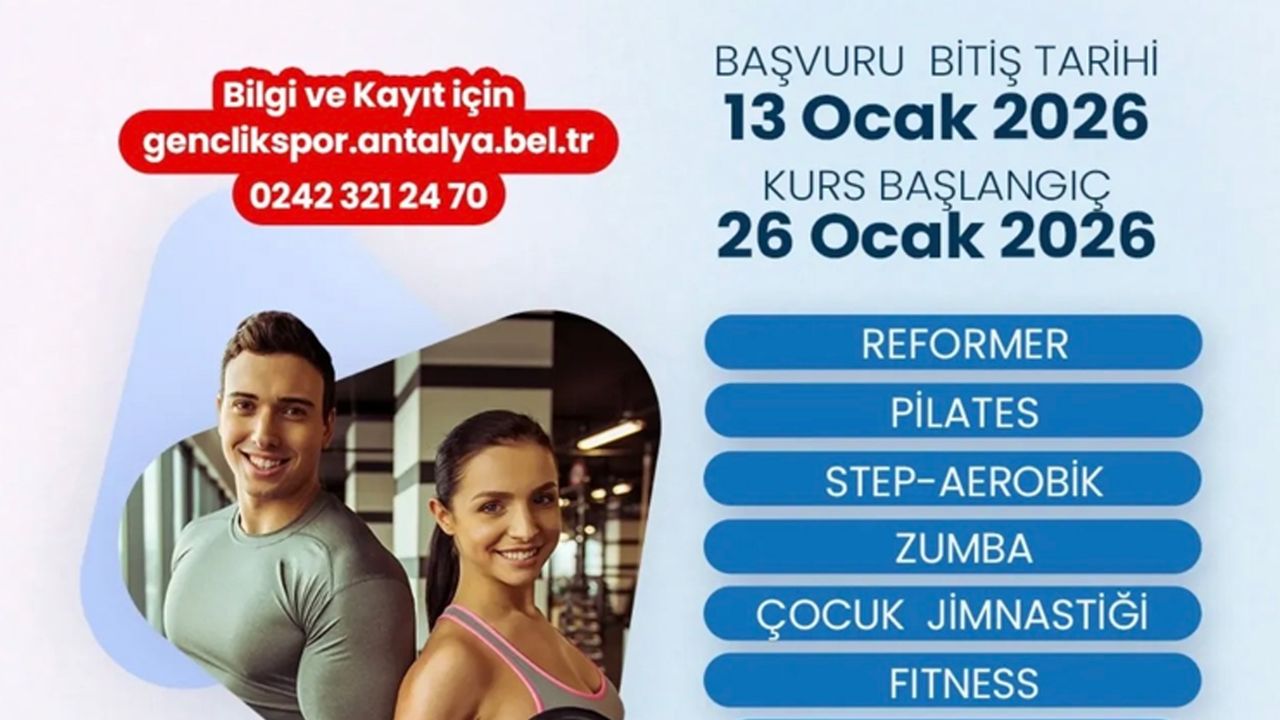 ANTALYA, (DHA)- ANTALYA Büyükşehir Belediyesi'nin ücretsiz spor imkanı sunduğu Antalya Spor ve Fitness Merkezleri'nde (ASFİM), yeni dönem kurs kayıtları başlıyor. Kurslar için 5 Ocak'tan 13 Ocak'a kadar online kayıt yapılabilecek, dersler 26 Ocak'ta başlayacak.