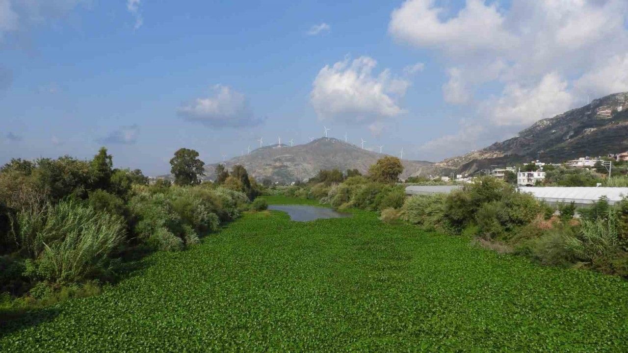 Hatay’ın Samandağ ilçesinde Asi Nehri’nde her yıl görülen istilacı su sümbülleri, bazı noktalarda nehri kapladı.