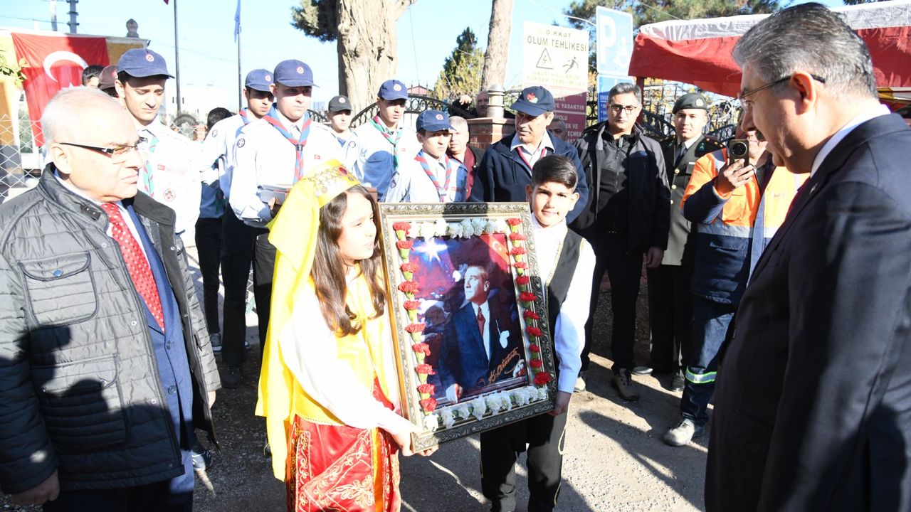 Askeri bando eşliğinde, tören bölüğü, protokol, öğrenciler ve halkın katılımıyla tren garından başlayıp Hasan Çenet Caddesi üzerinden Devlet Bahçeli Meydanına kadar kortej yürüyüşü gerçekleştirildi. Burada, Vali Erdinç Yılmaz, 12'nci Komando Tugay Komutan Vekili Piyade Albay Hüseyin Yılmaz ve Belediye Başkan Yardımcısı Sait Başkurt tarafından Atatürk Anıtına çelenk sunuldu. Saygı duruşu ve İstiklal Marşının okunmasının ardından Vali Yılmaz tarafından şeref defteri imzalandı. (DHA)