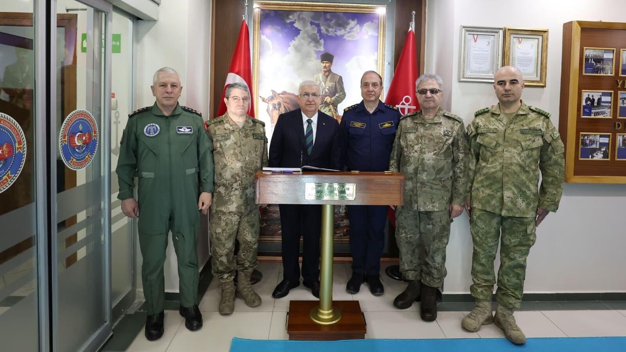 Milli Savunma Bakanı Yaşar Güler, Hatay'daki Habib-i Neccar Camisi'nde TSK komuta kademesi ile kıldıkları bayram namazının ardından İskenderun'a geçti. Beraberinde Genelkurmay Başkanı Orgeneral Selçuk Bayraktaroğlu, Deniz Kuvvetleri Komutanı Oramiral Ercüment Tatlıoğlu, Hava Kuvvetleri Komutanı Orgeneral Ziya Cemal Kadıoğlu, Kara Kuvvetleri Komutanı Orgeneral Metin Tokel ve Hatay Valisi Mustafa Masatlı ile Deniz Er Eğitim Alay Komutanlığı'na geçen Bakan Güler, inceleme ve denetlemelerde bulundu. (DHA)