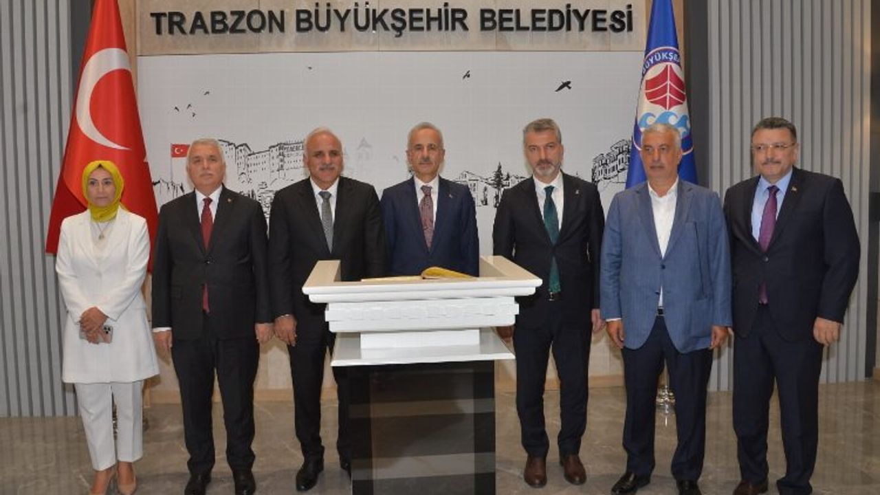 Ulaştırma ve Altyapı Bakanı Abdulkadir Uraloğlu, Trabzon Büyükşehir Belediyesini ziyaret ederek Belediye Başkanı Murat Zorluoğlu ile görüştü.TRABZON (İGFA) - Bir dizi temas ve incelemede bulunmak üzere Trabzon’a gelen Ulaştırma ve Altyapı Bakanı Abdulkadir Uraloğlu, beraberindeki heyetle Trabzon Büyükşehir Belediyesini ziyaret ederek Belediye Başkanı Murat Zorluoğlu ile bir araya geldi. Bakan Uraloğlu’nun Büyükşehir Belediyesi ziyaretine; Trabzon Valisi Aziz Yıldırım, AK Parti Trabzon Milletvekili Vehbi Koç, Trabzon Büyükşehir Belediyesi Genel Sekreteri Gürkan Üçüncü, Büyükşehir Belediye Başkan Vekili Atilla Ataman, Büyükşehir Belediye Meclisi AK Parti Grup Başkan Vekili Erhan Nadir, ilçe belediye başkanları ve AK Parti ilçe başkanları eşlik etti.