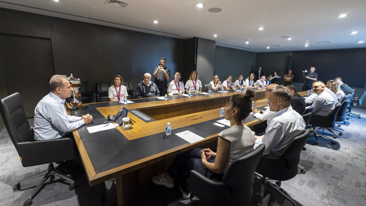 ÇBK Mersin kadınlar basketbol takımı, EuroCup'ta elde ettiği şampiyonluğun ardından kupayla birlikte TBB Başkan Vekili ve Büyükşehir Belediye Başkanı Vahap Seçer'i ziyaret etti. Ziyarette, ÇBK Mersin'in Kulüp Başkanı Serdar Çevirgen, Kulüp Asbaşkanı Ali Adalıoğlu, kulüp yöneticileri, kulüp teknik ekibi ve takım oyuncuları yer aldı. Sözlerine takımı tebrik ederek başlayan Başkan Seçer, rakibin de güçlü olduğunu ve buna rağmen gösterilen sıkı mücadele sonucu galibiyetin elde edildiğini ifade etti. Seçer, 'Birkaç teşekkürüm var. Bir tanesi tabii ki ülkemizin ismini Avrupa'da hatta dünyada duyurduğunuz için bir de belediye başkanlığı görevimden dolayı, şehrimin ismini hem Türkiye'de hem Avrupa'da duyurduğunuz için çok teşekkür ediyorum. Bu başarı tarifi olmayan, kentim için çok büyük bir zenginlik. Bu zenginliği de sizler sağladınız' dedi.