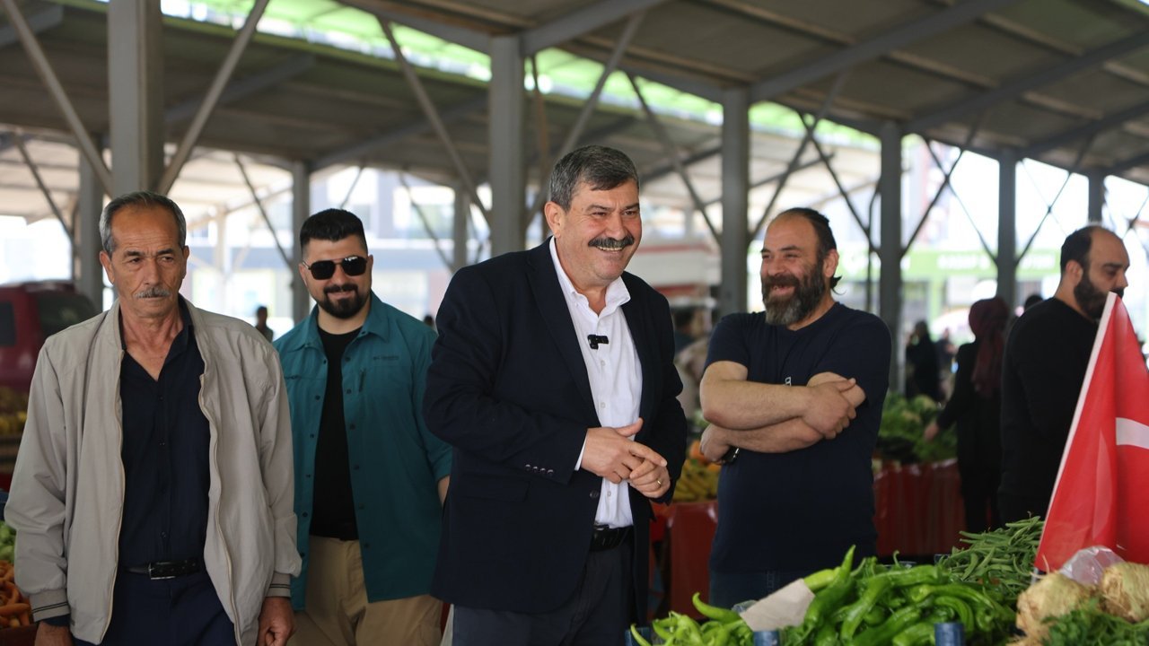Pazar esnafının güleryüzü ve samimiyetiyle karşılanan Başkan Yıldız, üreticilerin ve vatandaşların talep ve önerilerini de dinledi. (DHA)