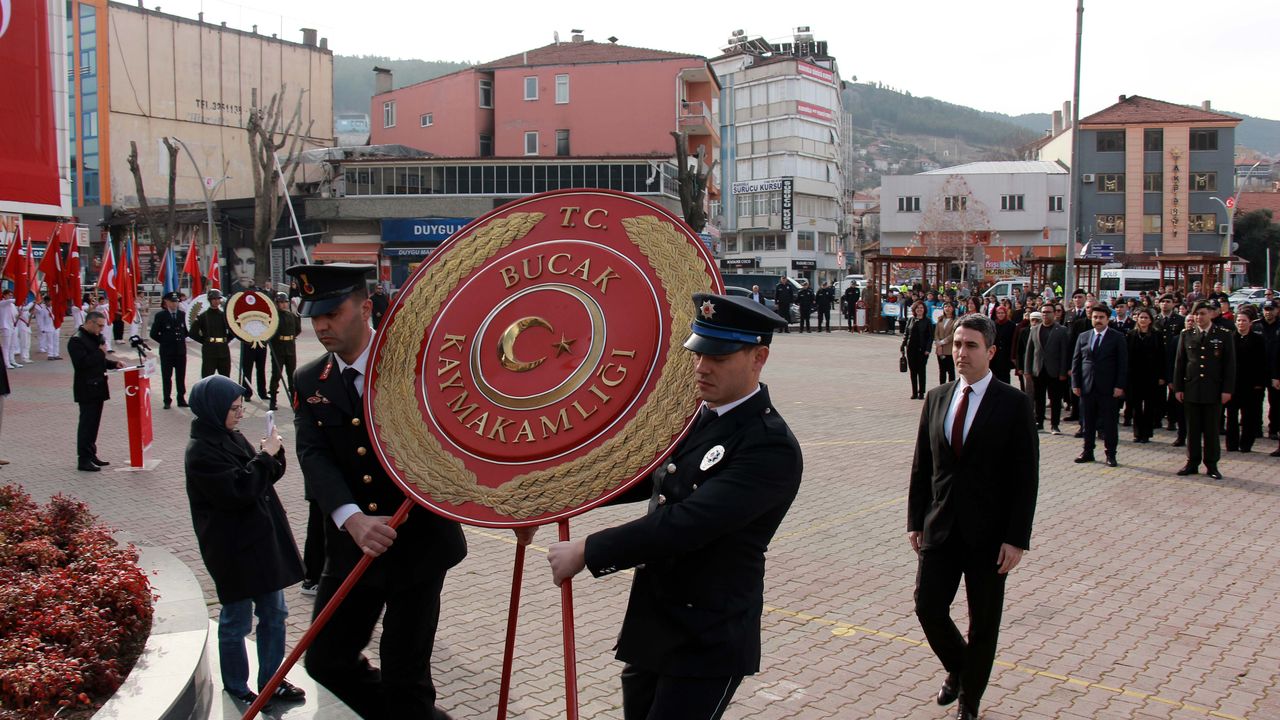 Halim AKCA/BUCAK, (DHA)- BURDUR'un Bucak ilçesinde 18 Mart Şehitleri Anma Günü ve Çanakkale Zaferi'nin 111'inci yıl dönümü dolayısıyla tören yapıldı.