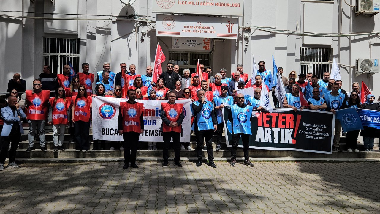 Halim AKCA/BUCAK, (DHA) - BURDUR'un Bucak ilçesinde Türk Eğitim-Sen ve Eğitim-İş Sendikası, Şanlıurfa ve Kahramanmaraş'ta okullarda meydana gelen ve can kayıplarıyla sonuçlanan saldırıları protesto amacıyla ortak basın açıklaması gerçekleştirdi.