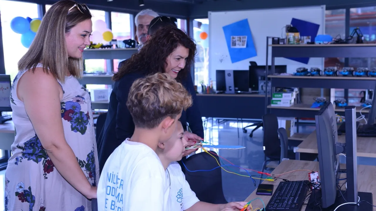 Nilüfer Belediyesi bünyesindeki Kadın ve Çocuk Akademileri'nden gelen 52 öğrenci, yaklaşık 60 saatlik atölye çalışmalarının ardından ürettikleri projeleri Pancar Deposu'nda düzenlenen fuarda sergiledi. 5., 6., 7. ve 8. sınıf öğrencilerinden oluşan katılımcılar, ahşap modelleme, robotik kodlama, temel elektronik ve yapay zekâ gibi alanlarda edindikleri bilgi ve becerileri kullanarak ortaya koydukları yaratıcı çalışmalarını düzenlenen etkinlikte görücüye çıkardı.
