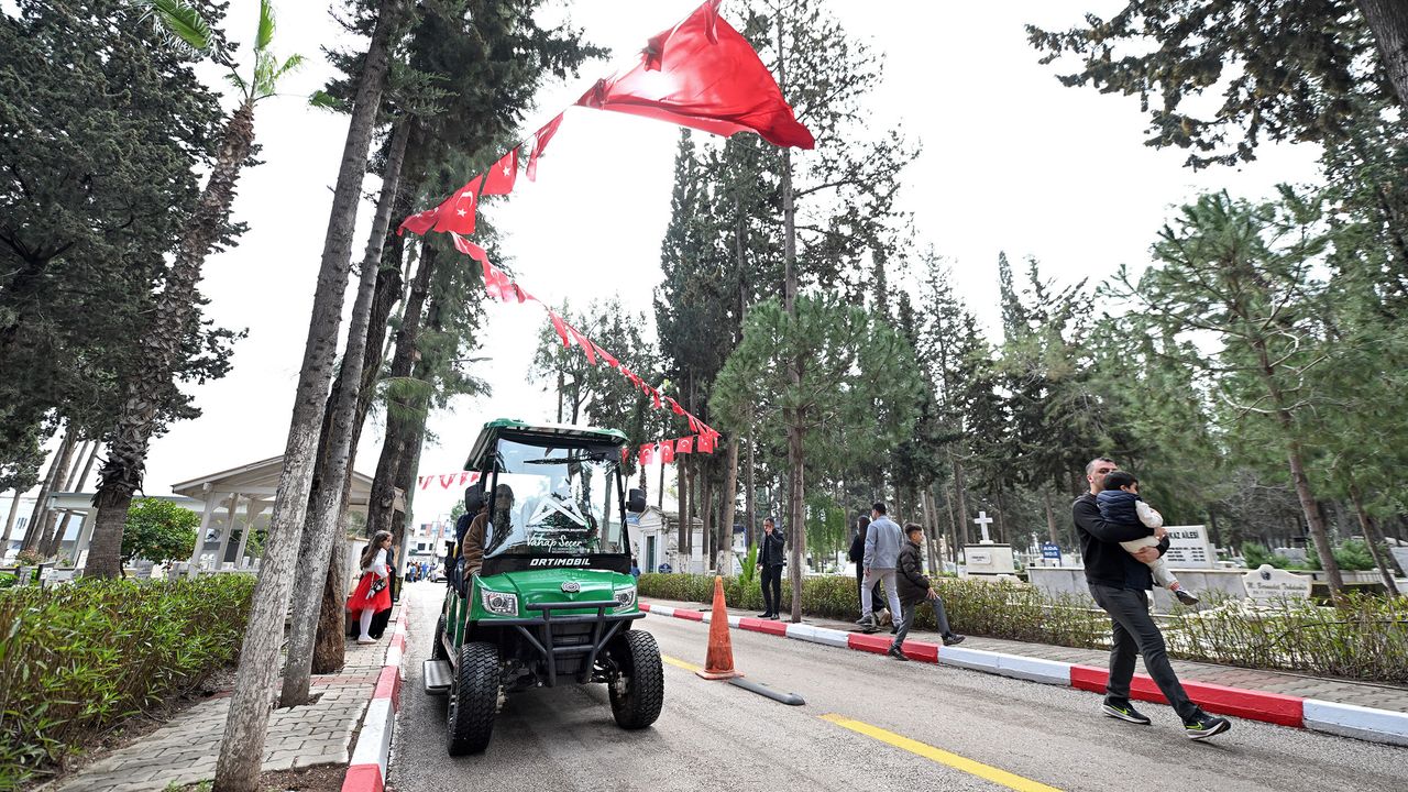 Vatandaşları her anında yanında olan Büyükşehir Belediyesi, Ramazan Bayramı boyunca sevdikleri ebediyete irtihal etmiş vatandaşların da yanında olmaya devam ediyor. 'Kaybımız Bir Kalbimiz Bir' sloganıyla hareket eden Mezarlık İşleri Dairesi Başkanlığı, kentin dört bir yanında bayram boyunca su, kolonya ve şeker ikram ederek kimseyi yalnız bırakmıyor. Hem bayramlaşan hem de acıları paylaşarak azaltan Büyükşehir ekipleri, bayram boyunca mezarlık içerisine araç alınmayacağı için verdikleri ring hizmeti ile öncelikle yaşlı ve engellilerin ulaşımını kolaylaştırırken, ulaşımın konforlu bir hale getiriyor.