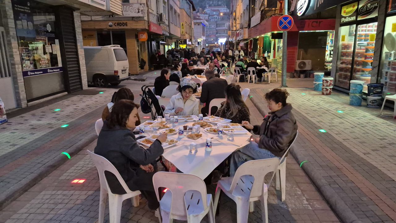 Cami Mahallesi Belediye Caddesi'ndeki esnaf tarafından düzenlenen ve geleneksel hale getirilmesi planlanan iftar yemeği, yoğun katılımla gerçekleştirildi. Programa Kaymakam Ömer Çimşit, Belediye Başkanı Mustafa Özer, cadde esnafı ve çok sayıda vatandaş katıldı. Samimi bir ortamda gerçekleşen iftar yemeğinde katılımcılar, Ramazan ayının paylaşma ve kaynaşma ruhunu hep birlikte yaşadı. Cadde esnafı iftar programını her yıl tekrar ederek geleneksel hale getirmeyi hedeflediklerini anlattı. (DHA)