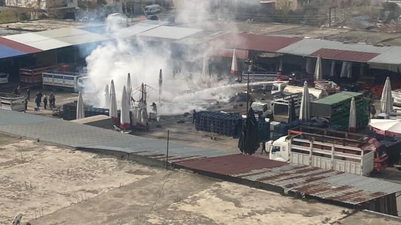 Ceyhun ÖZER/CEYHAN,(Adana),(DHA)- ADANA'nın Ceyhan Sebze Hali içerisinde yangın çıktı. Plastik sebze ve meyve kasalarının tutuşması sonucu büyüyen yangın itfaiye ekipleri tarafından söndürülürken, 4 araç zarar gördü.