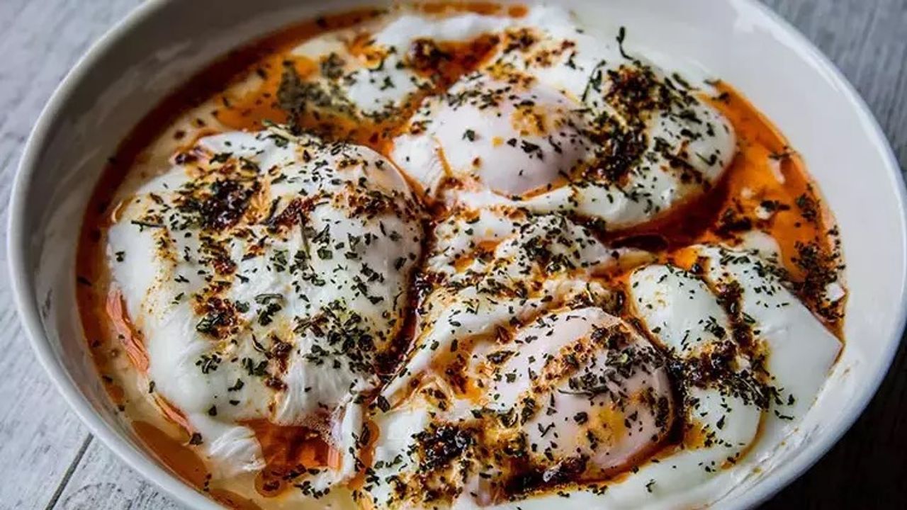 Haşlanan yumurtaları yoğurdun üzerine yerleştirin. Ardından üzerine kızdırdığınız sosu dökün. -