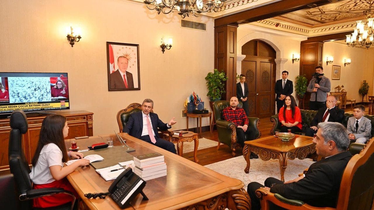 Konuşmasında Vali Hulusi Şahin'e de teşekkür eden Karsavurdan, 'Sayın valim, bu özel günde bizleri makamınızda ağırlayarak çok mutlu ettiniz. Gücümüze güç kattınız, çocuk kalbimize neşe verdiniz. Biz çocuklara sevgiyle kucak açmanız ve eğitime olan ilginizden dolayı Antalya çocukları olarak çok şanslıyız. Bu güzel günü çocuklara armağan eden başta Gazi Mustafa Kemal Atatürk olmak üzere, onun silah arkadaşlarını ve bağımsızlık için canlarını feda eden aziz şehitlerimizi saygıyla anıyor, gazilerimize şükranlarımı sunuyorum' sözlerini kullandı.
