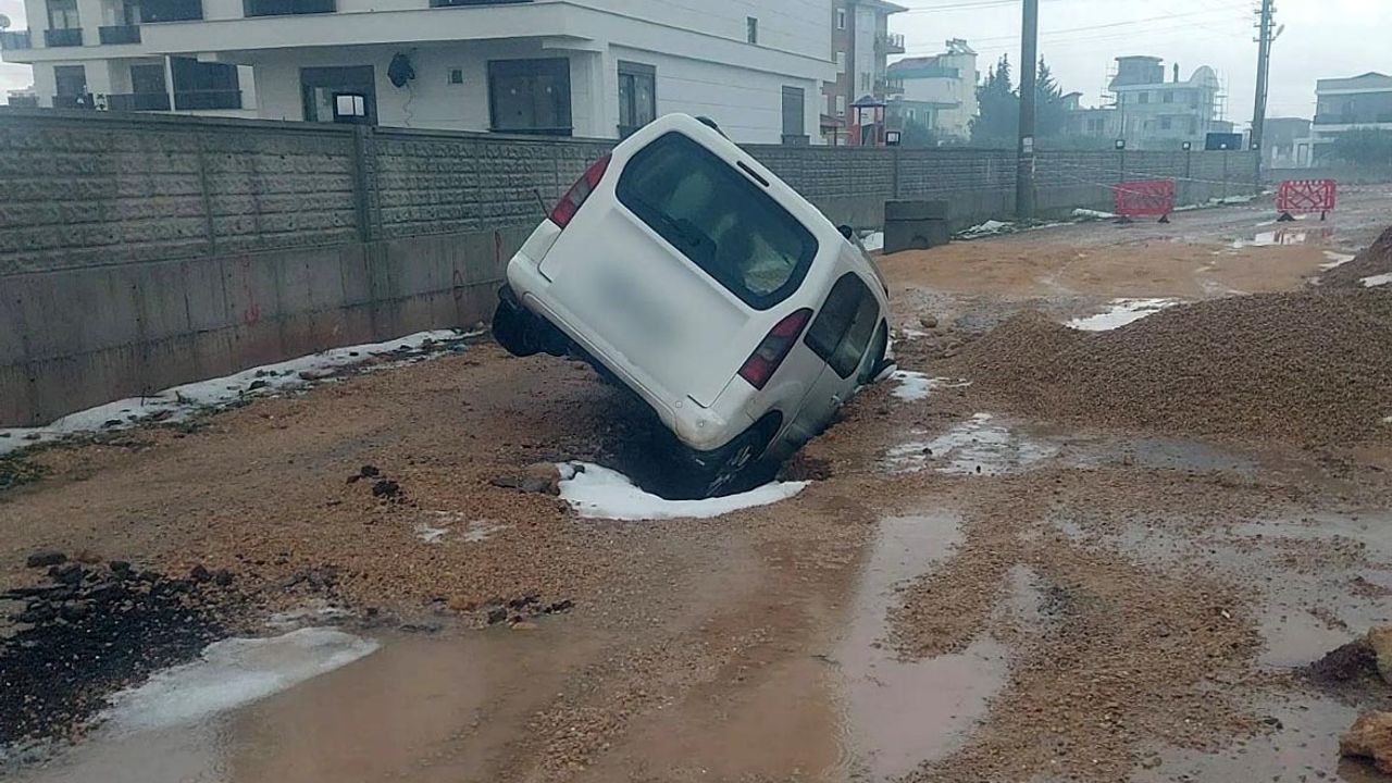 Olay, ilçeye bağlı Yeniköy mahallesi 217 sokakta meydana gledi. Daha önce bölgede yapılan altyapı çalışmaları nedeniyle kazılan yol, çalışmaların tamamlanmasıyla kapatıldı. Ancak ilçede etkili olan sağanak ve dolu yağışı sonrası yol su birikintisi nedeniyle göle döndü ve yer yer çökmeler meydana geldi. Tam bu esnada bu yolu kallanan ve yağmur suları nedeniyle çöken alanı fark edemeyen bir sürücü, aracıyla çukura düştü. Can kaybı ve yaralanmanın olmadığı olay sonrası yolda yeniden çalışma yapılarak göçen alan toprakla dolduruldu.