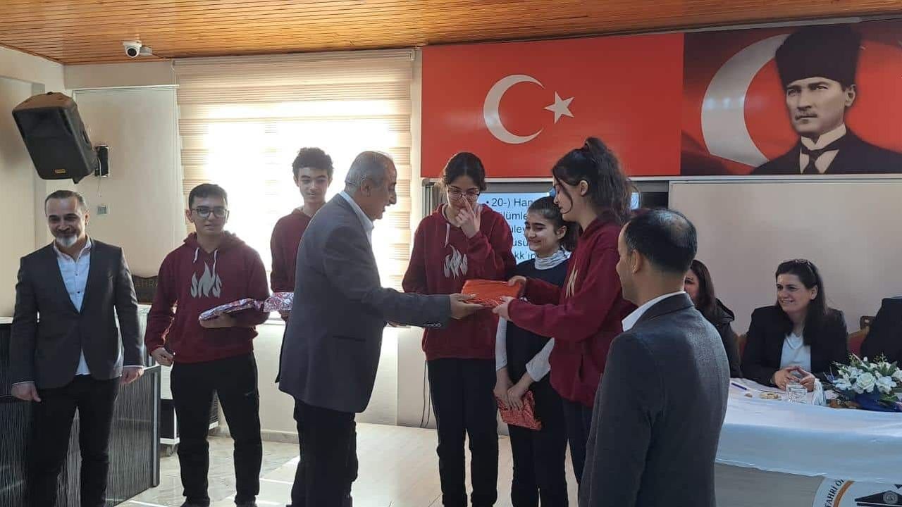 Nimet Fahri Öksüz Turizm MTAL'de düzenlenen Liseler Arası Mehmet Akif Ersoy'u Anma Günü etkinlikleri kapsamında 'Korkma! Gençliğin Ruhu Burada' temalı Bilgi Yarışması ödül törenine İlçe Milli Eğitim Müdürü Kemal Gülistan, okul müdürleri, öğretmenler ve öğrenciler katıldı. Dereceye giren okulların yarışma ekibi öğrencilerine ödülleri ve hediyelerini veren Müdür Kemal Gülistan bu yarışmanın amacının İstiklal Şairi Mehmet Akif Ersoy'u daha iyi tanımak ve anlamak olduğunu ifade ederek, yarışmanın düzenlenmesinde emeği geçen yöneticilere, öğretmenlere ve öğrencilere teşekkür ederek başarılar diledi. (DHA)