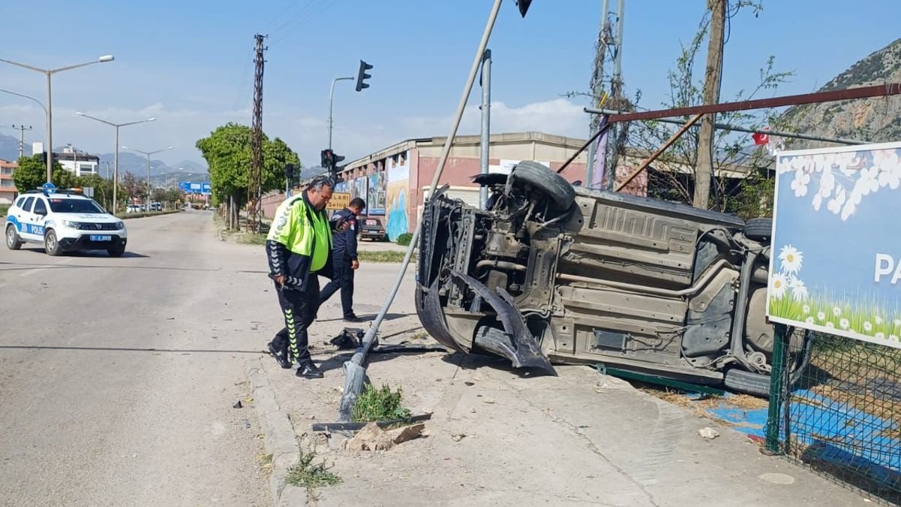 Kaza, öğle saatlerinde Kozan-Adana kara yolunda meydana geldi. Sürücüsünün ismi öğrenilemeyen 35 BEA 039 plakalı otomobil kontrolden çıkarak kavşaktaki trafik ışıklarına çarptı. Çarpmanın etkisiyle devrilen otomobilin sürücüsü yaralandı. Çevredekilerin ihbarıyla kaza yerine sevk edilen sağlık ekipleri, yaralı sürücüyü ambulansla hastaneye kaldırdı. Kazayla ilgili inceleme başlatıldı. (DHA)