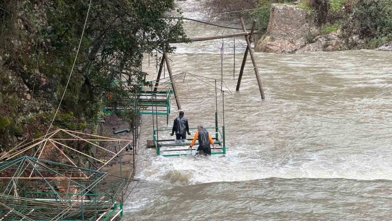 Alanya'da son dönemde etkili olan yağışların artmasıyla tam doluluğa ulaşan Dim Barajı'nda kontrollü su tahliyesi yapılmaya başlandı. Kaymakam Şakir Öner Öztürk, 'Son dönemdeki yağışların etkisiyle beraber barajda da çok ciddi manada doluluk noktasına geldi. Ola ki yağışların artması durumunda ciddi sıkıntıyla karşı karşıya kalmamak için dip savak dediğimiz bölgeden boşaltmaya başladılar. Oradaki vadiyi de çok tehlikeye atmadan bir anda da bırakmadan, o dip savağı açmazlarsa bu sefer dolu savak kendiliğinden doğal olarak bu sefer taşarak boşaltmaya başlıyor. Bu daha büyük bir risk oluyor. Çünkü dolu savağın taşması kontrolsüz bir taşma oluyor. Şimdi o dip savaktan bir miktar boşaltmaya başladılar. Böyle devam edecekler. Yağışların olduğu süre içerisinde bu dip savaktaki boşaltmaya devam edecekler. Çünkü devamlı yağış uyarısı da var. Doluluk oranı ciddi noktalara geldi ama tedbir alınması gereken bir dönemdeyiz' dedi. (DHA)