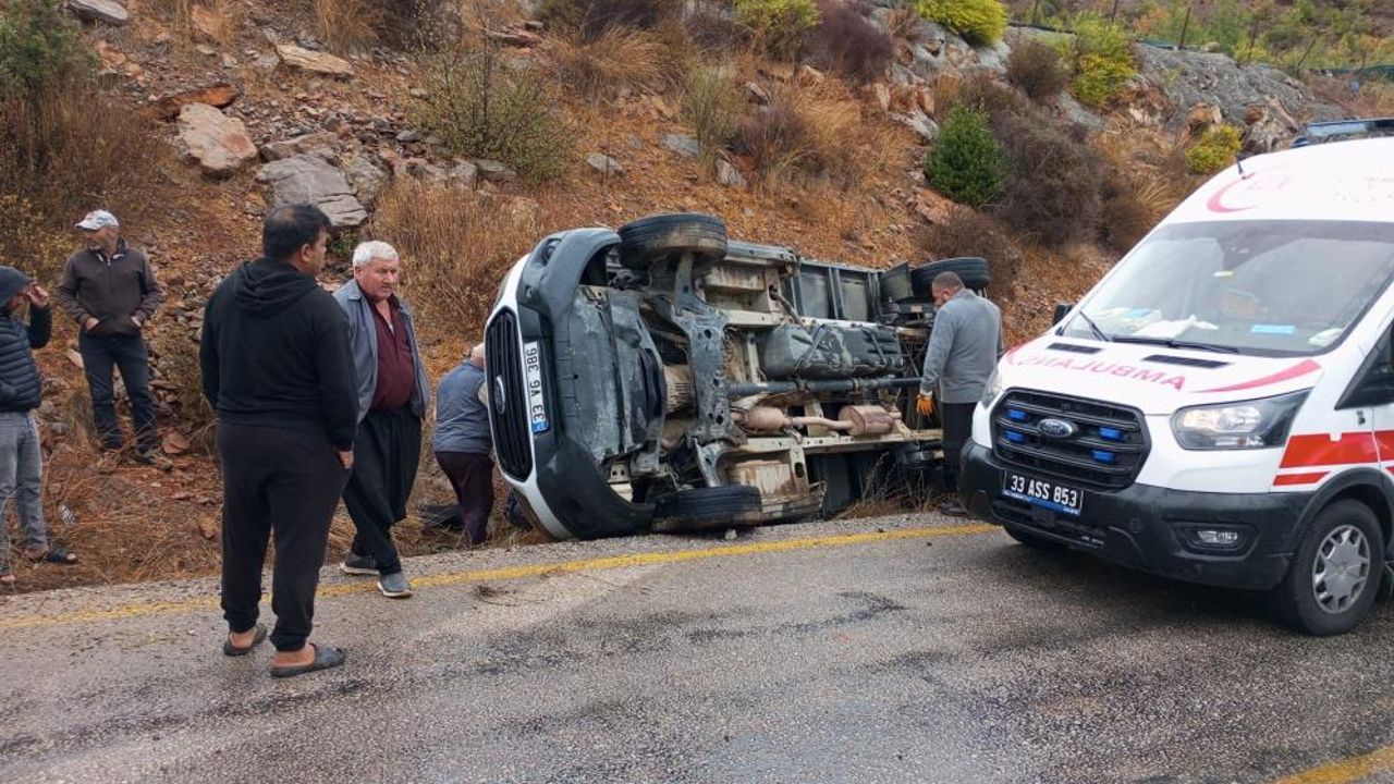 Kaza, Erdemli ilçesine bağlı Esenpınar Mahallesi Ağlıca mevkiinde meydana geldi. Sürücü A.T. yönetimindeki elma yüklü 33 VG 386 plakalı kamyonet, yağış nedeniyle kayganlaşan yolda direksiyon hakimiyetini kaybederek şarampole devrildi.