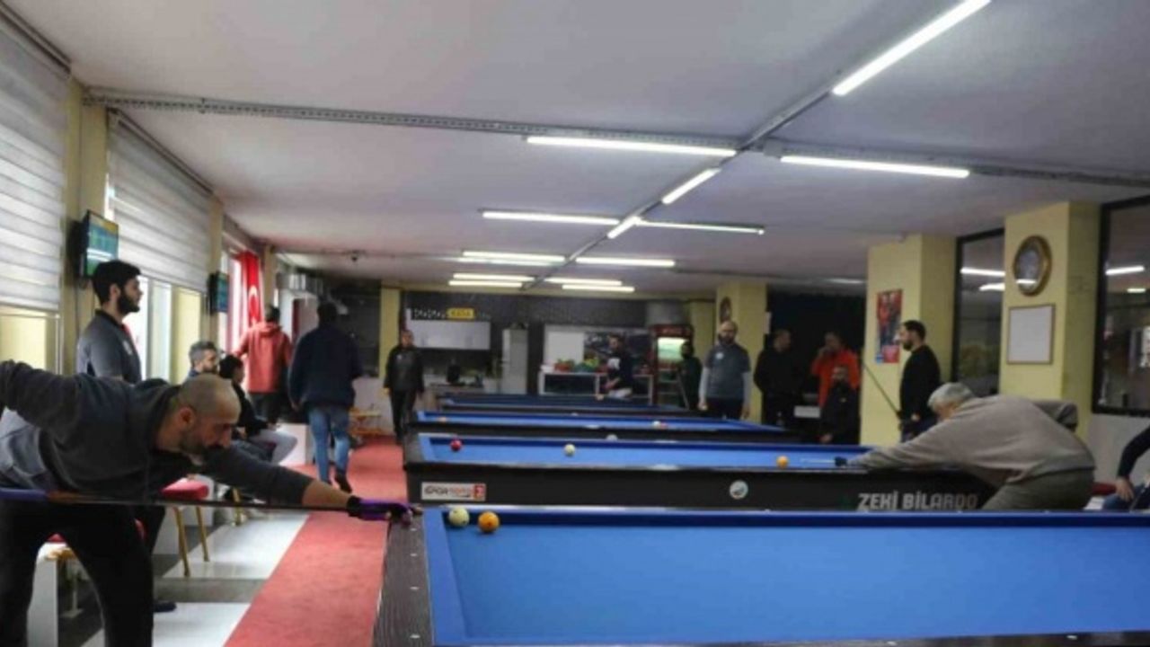 Karabük’te farklı şehirlerden gelen bilardocular depremzedelere yardım için günübirlik turnuvada bir araya geldi.