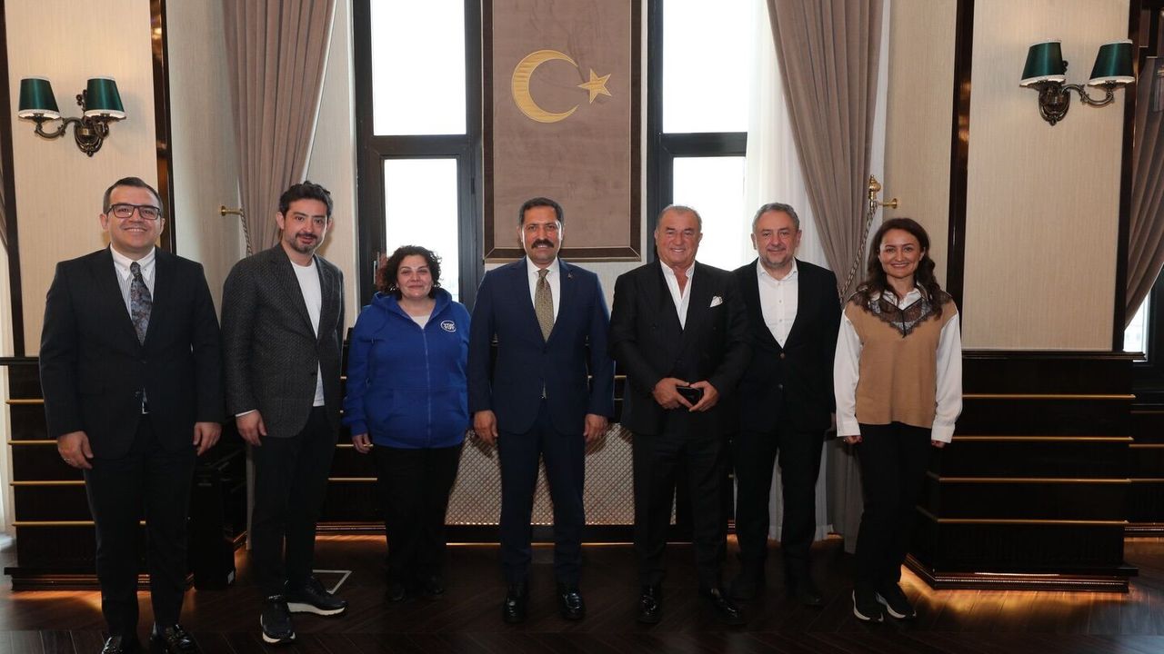 Hatay Valisi Mustafa Masatlı'yı ziyaret eden A Milli Futbol Takımı eski teknik direktönü Fatih Terim ve TOKTUT Derneği yönetimi, samimi bir ortamda gerçekleşen sohbette, sporun toplumsal hayattaki yeri, gençliğe ilham veren yönü ve ülkemizde spora dair yürütülen çalışmalar ve yardım faaliyetleri üzerine görüş alışverişinde bulundu. Vali Masatlı, ziyaret dolayısıyla Fatih Terim'e teşekkür etti. (DHA)