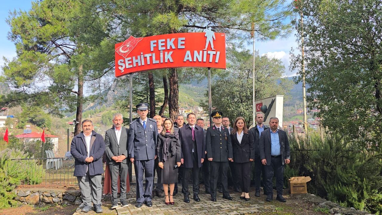 Atatürk Anıtı'na çelenk sunulmasıyla başlayan program saygı duruşu ve İstiklal Marşı'nın okunmasıyla devam etti. Programa, Feke Kaymakamı Feyza Yılmaz, Feke Belediye Başkanı Cömert Özen, ilçe protokolü, kurum amirleri, muhtarlar ve çok sayıda vatandaş katıldı. Resmi törenin ardından katılımcılar şehitlik anıtına geçti. Burada devam eden programda Kur'an-ı Kerim okundu. Şehitler için edilen duaların ardından anma programı sona erdi. (DHA)