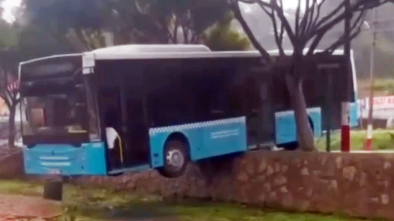 Aksu ilçesinde dün öğle saatlerinde, freni boşalan Büyükşehir Belediyesi'ne ait 07 AU 0176 plakalı otobüs, kontrolden çıkarak Aksu Belediye binasının yan tarafında bulunan parkın duvarında asılı kaldı. Parkta o sırada kimsenin bulunmaması, olası faciayı önledi. Kazanın ardından, bölgeye polis ekipleri sevk edildi.