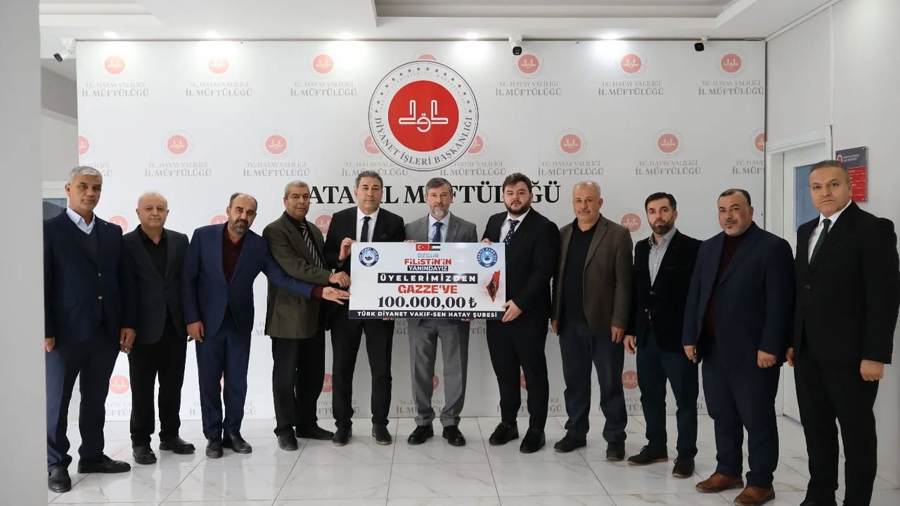 Samim SELÇUK/ HATAY, (DHA) - TÜRK Diyanet Vakıf-Sen Hatay Şubesi, 2026 yılı promosyon bedelinden 100 bin TL'yi Gazze'de yaşanan insani kriz nedeniyle bağışladı.