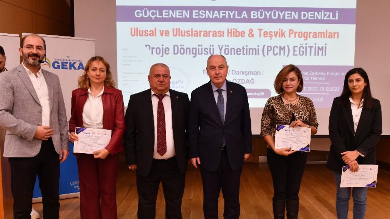 Denizli’de proje bilincinin gelişmesi ve ortak proje yürütme konusunun yaygınlaşması amacıyla Güney Ege Kalkınma Ajansının (GEKA) desteklediği ve Denizli Esnaf ve Sanatkarlar Odaları Birliğinin (DESOB) yürüttüğü “Güçlenen Esnafıyla Büyüyen Denizli”projesi sertifika töreniyle sona erdi.DENİZLİ (İGFA)- Esnaf ve sanatkarların üye olduğu ve Denizli genelindeki 67 meslek odasının bağlı bulunduğu DESOB’un GEKA’nın Teknik Destek Programı ile hayata geçirdiği proje döngüsü yönetimi eğitimi, proje kültürünün yaygınlaşması ve geniş kitlelere ulaşması hedefiyle hayata geçirildi.