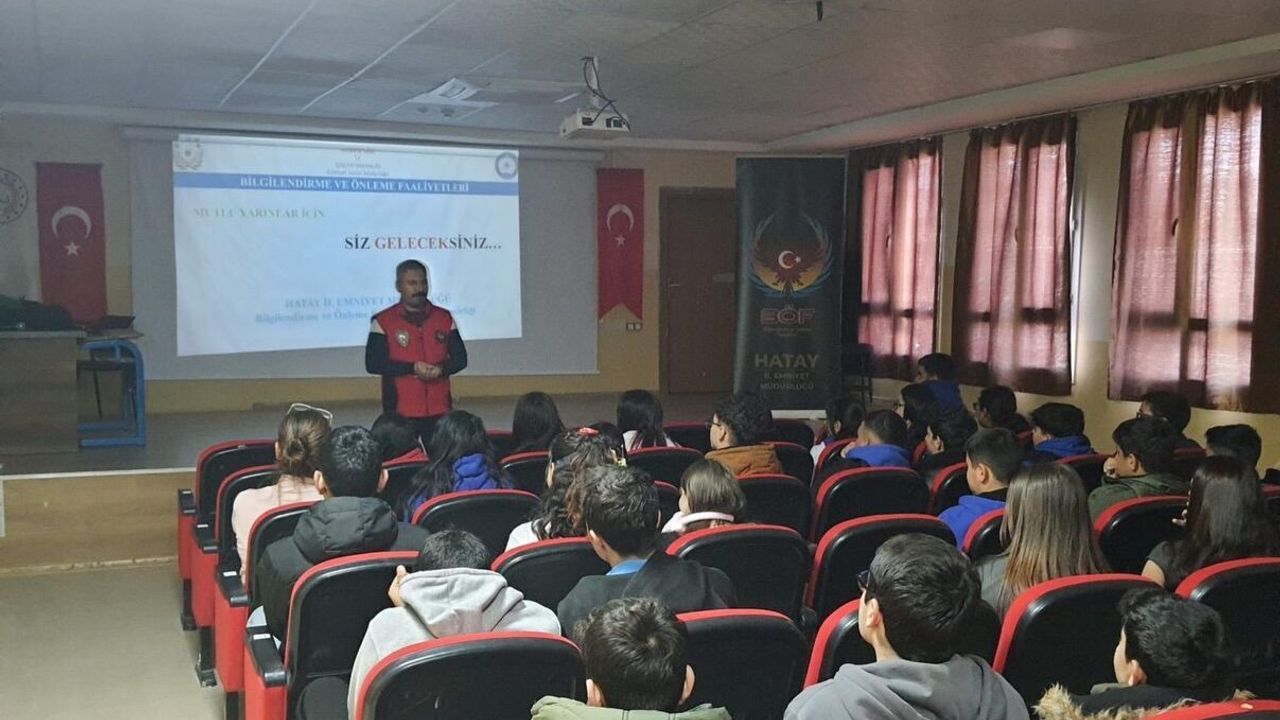 İl Emniyet Müdürlüğü tarafından, Antakya'da bulunan Şehit Ahmet Benli Mesleki ve Teknik Anadolu Lisesi öğrencilerine yönelik bilgilendirme çalışması yapıldı. Gençlik ve Güvenli Gelecek Projesi kapsamında düzenlenen etkinlikte, gençlerin bilinçli ve güvenli bir ortamda yetişmesine yönelik önemli bilgiler paylaşıldı. Gerçekleştirilen programda, gençleri tehdit edebilecek unsurlara karşı farkındalık oluşturulması hedeflenirken, doğru bilgiyle donatılan bireylerin güçlü bir toplumun temelini oluşturduğu vurgulandı. Emniyet ekipleri tarafından yapılan sunumlarda, gençlerin karşılaşabileceği riskler ve bu risklere karşı alınması gereken önlemler detaylı şekilde aktarıldı. Eğitim çalışmaları kapsamında öğrencilere güvenli yaşam bilinci kazandırılması amaçlanırken, özellikle zararlı yapılara karşı dikkatli olunması gerektiği ifade edildi. Programda, bilinçli bireylerin hem kendi geleceklerini hem de toplumun huzurunu koruyacağına dikkat çekildi. (DHA)