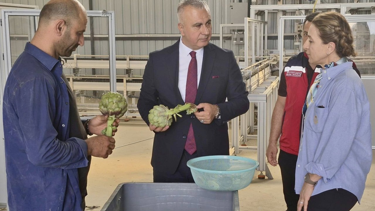 Hatay Gıda, Tarım ve Ormancılık İl Müdürü Abdurrahman Türkmen, ilçeye bağlı Serinyol Mahallesi'nde faaliyet gösteren bir çiftliğe ait üretim alanlarında yürütülen enginar hasadı çalışmalarını yerinde inceleyerek yetkililerden bilgi aldı. Gerçekleştirilen incelemelerde; üretim süreçleri, hasat faaliyetleri ve ürün kalitesi hakkında değerlendirmelerde bulunan İl Müdürü Türkmen, kentte katma değeri yüksek tarımsal üretimin ve ihracata yönelik çalışmaların önemine dikkat çekti. Türkmen, üretimin artırılması, ürün kalitesinin yükseltilmesi ve ihracat potansiyelinin geliştirilmesine yönelik çalışmaların da İl Müdürlüğünce kararlılıkla devam ettiğini kaydetti. (DHA)