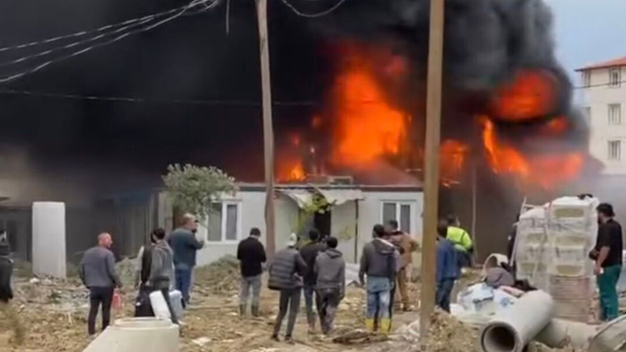 Alican GÜMÜŞ/HATAY, (DHA)-HATAY'ın Defne ilçesinde şantiye alanında işçilerin kaldığı konteynerlerde çıkan yangında 26 konteyner kullanılamaz hale geldi. Yangına itfaiye ekipleri müdahale etti.