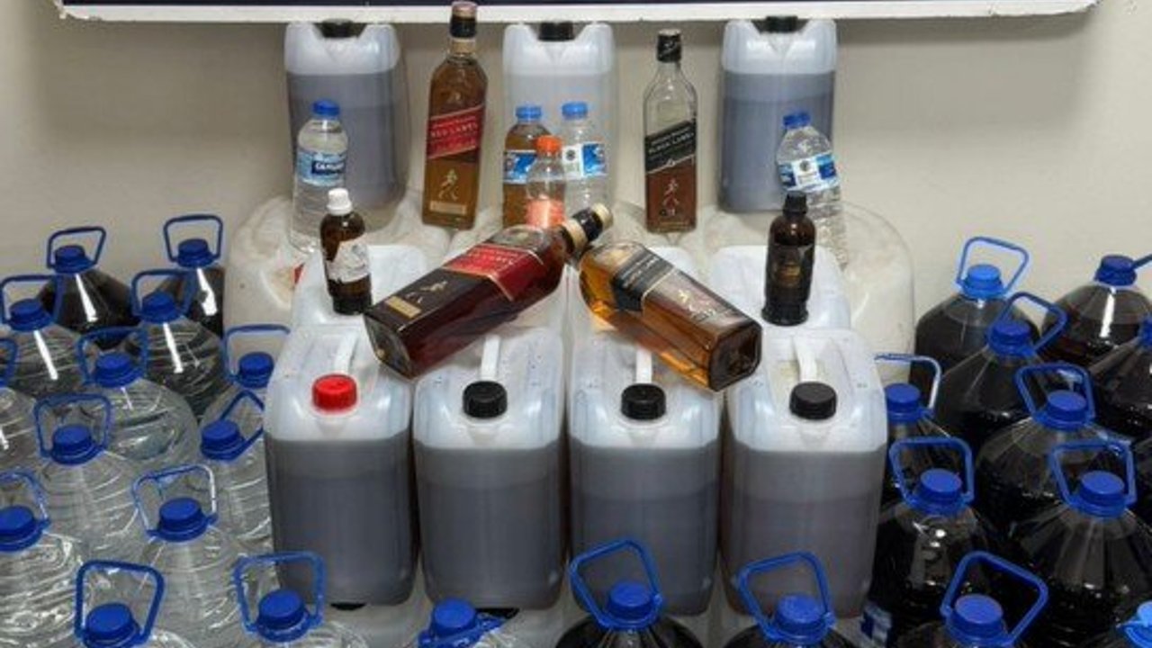 Hatay İl Jandarma Komutanlığı ekipleri tarafından Antakya ilçesinde düzenlenen operasyonda D.G.'nin evinde yapılan aramada 190 litre kaçak viski, 220 litre kaçak rakı, 80 litre etil alkol, 3,5 litrelik 4 şişe bandrolsüz içki, viski ve rakı yapım kitler, 36 paket bandrolsüz kaçak sigara ile 630 adet kuru sıkı tabanca mermisi, 1 adet kuru sıkı tabanca şarjörü ele geçirildi. D.G. gözaltına alınarak soruşturma başlatıldı. (DHA)