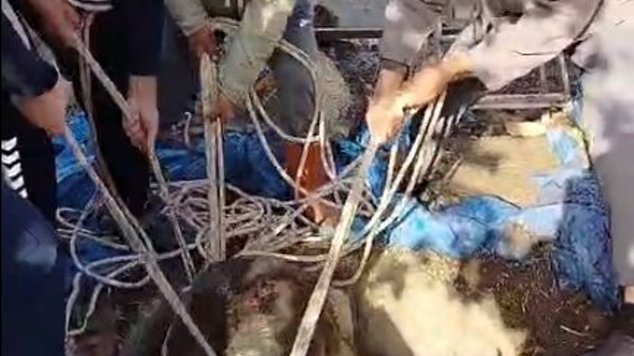 Kuletepe Mahallesi'nde meraya götürülen büyükbaş hayvanların arasında bulunan buzağı bahçede kapağı açık kuyuya düştü. Sahipleri tarafından çıkarılamayan buzağının kurtarılması için itfaiyeye haber verildi. Mahalleye gelen ekipler, ip bağladıkları buzağıyı sağ olarak kurtardı. (DHA)
