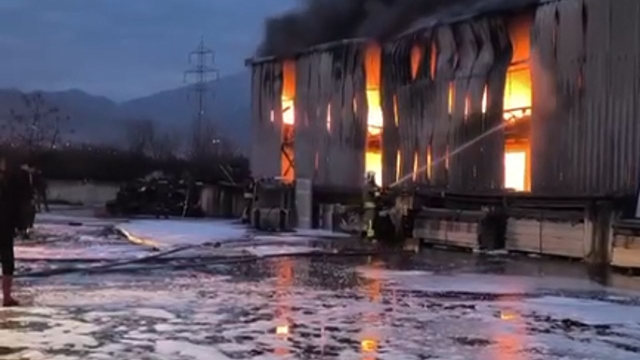 Alican GÜMÜŞ/HATAY,(DHA)- HATAY'ın Dörtyol ilçesinde bulunan bir lojistik firmasının içerisinde lastik bulunan depo bölümünde yangın çıktı. İtfaiye ekiplerinin yangını söndürme çalışmaları sürüyor.