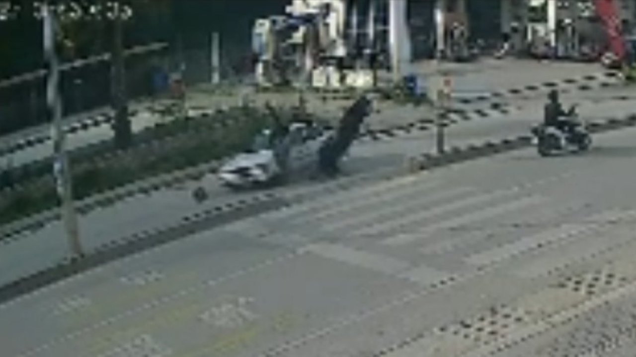 Alican GÜMÜŞ/HATAY, (DHA)- HATAY'ın Antakya ilçesinde yaya geçidini kullanarak dönüş yapmak isteyen otomobile motosikletin çarptığı kaza güvenlik kamerasına yansıdı.