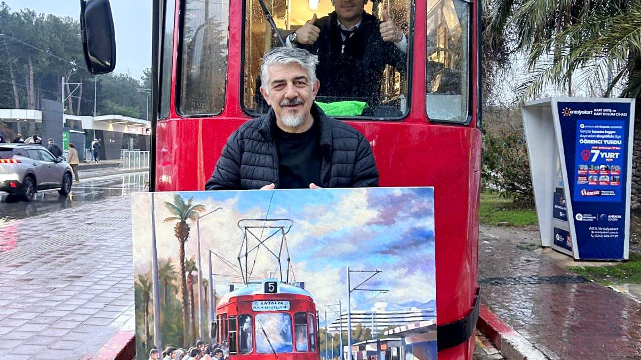 Yusuf DEMİR/NTALYA, (DHA)- ANTALYA'da yaşayan ressam Ahmet Korkmaz, 5 yıldır her sabah işe gitmek için aralıksız bindiği nostalji tramvayını tuvaline taşıdı.