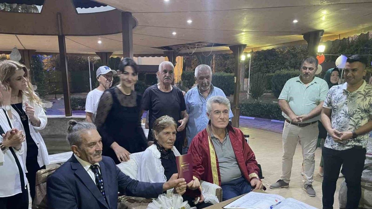 Huzurevi bahçesinde düzenlenen törenle ikinci bahara evet diyen çift, alkışlar eşliğinde nikâh defterini imzaladı. Gelin Emine Kaya’nın damadın ayağına basması sonucu gerçekleşen nikâh akdinden sonra çiftler ilk danslarını yapıp pasta kesti. Törene huzurevi sakinleri ve personeli katılarak çiftlerin mutluluğuna ortak oldu.
