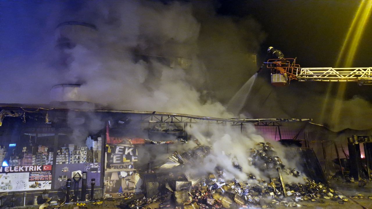 Yangın, dün saat 22.00 sıralarında Dr. Derviş Eroğlu Dörtyol Bulvarı'ndaki işletmede meydana geldi. 2 katlı binanın zemin katında elektrik malzemesi satılan iş yerinde başlayan yangında ihbar üzerine olay yerine itfaiye, polis ve sağlık ekibi sevk edildi. Büyüyen yangında alevler kısa sürede üst kattaki eve ve tüm binaya yayıldı. Üst kattaki dairede oturan 2'si çocuk 4 kişilik Soydan ailesi komşularının uyarısıyla dışarı çıktı. İtfaiye ekiplerinin müdahalesiyle yangın söndürüldü. İş yerinde yanan malzemelerde itfaiye uzun süre soğutma çalışması gerçekleştirdi. (DHA)