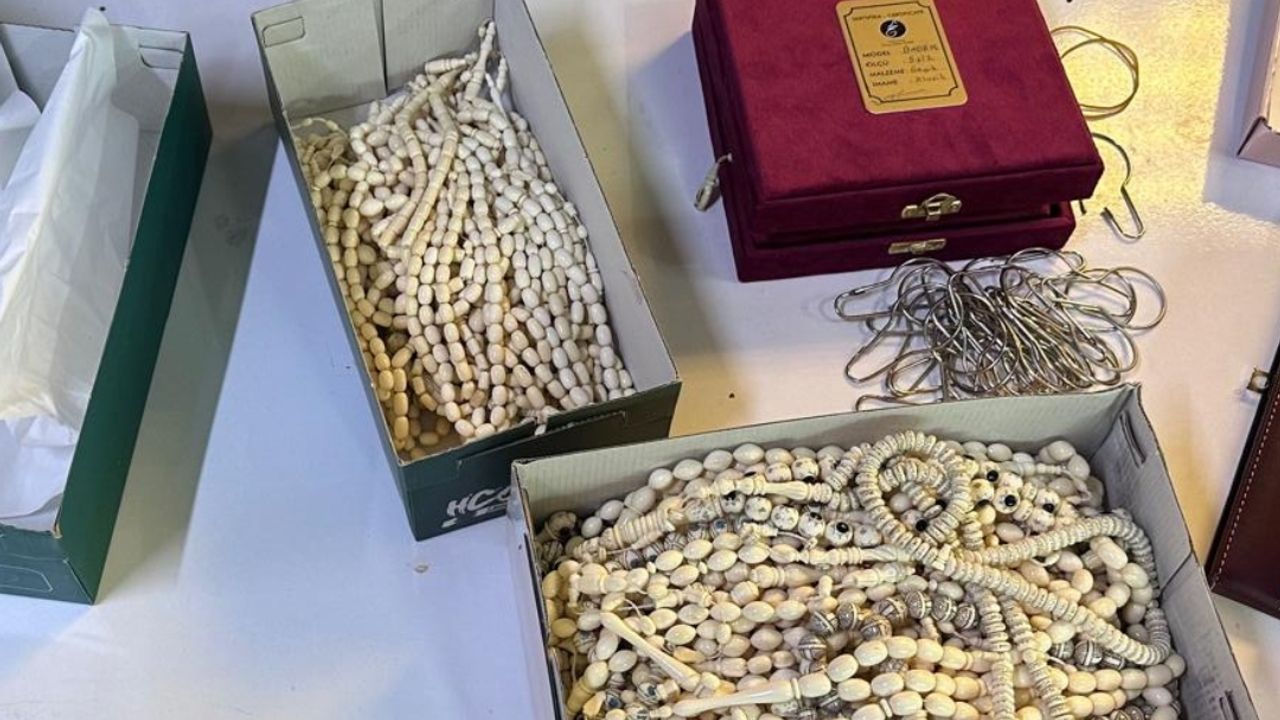 Doğa Koruma ve Milli Parklar Genel Müdürlüğü’ne gelen ihbar üzerine başlatılan soruşturma kapsamında polis ekipleri iş yerine operasyon düzenledi. İş yerinde yapılan aramada; 106 adet fil dişi tespih, 101 adet fil dişi tespih parçası, 180 adet kurt dişi, 10 adet halka şeklinde içi boş fil dişi, 8 adet yumurta şeklinde fil dişi, 13 adet Caretta caretta kabuğundan yapılmış tespih, 8 adet aslan tırnağı, 1 kilo 250 gram fil dişi parçası, 52 adet dekoratif fil dişi obje, 1 adet geyik boynuzundan yapılmış tespih ve yüzük, 1 adet timsah derisi ve timsah dişlerinden oluşan şapka, 1 adet balina dişinden yapılmış tespih, 8 adet karaca trofesi, 1 adet ceylan postu, 1 adet gelincik postu, 1 adet timsah kafası, 1 adet vaşak kafası, 1 adet engerek yılanı tahniti, 3 adet kunduz trofesi ve çene takımı, 10 adet timsah pençesi, 10 adet timsah dişi, 2 adet bufalo boynuzu, 33 adet bufalo boynuzundan yapılmış tespih ele geçirildi. Yapılan inceleme sonrası iş yeri sahibine ilgili kanunlar gereği idari para cezası uygulanırken, yerli türlere ait ürünler için ayrıca tazminat cezası kesileceği öğrenildi. Şüpheli hakkında adli işlem başlatıldı. (DHA)