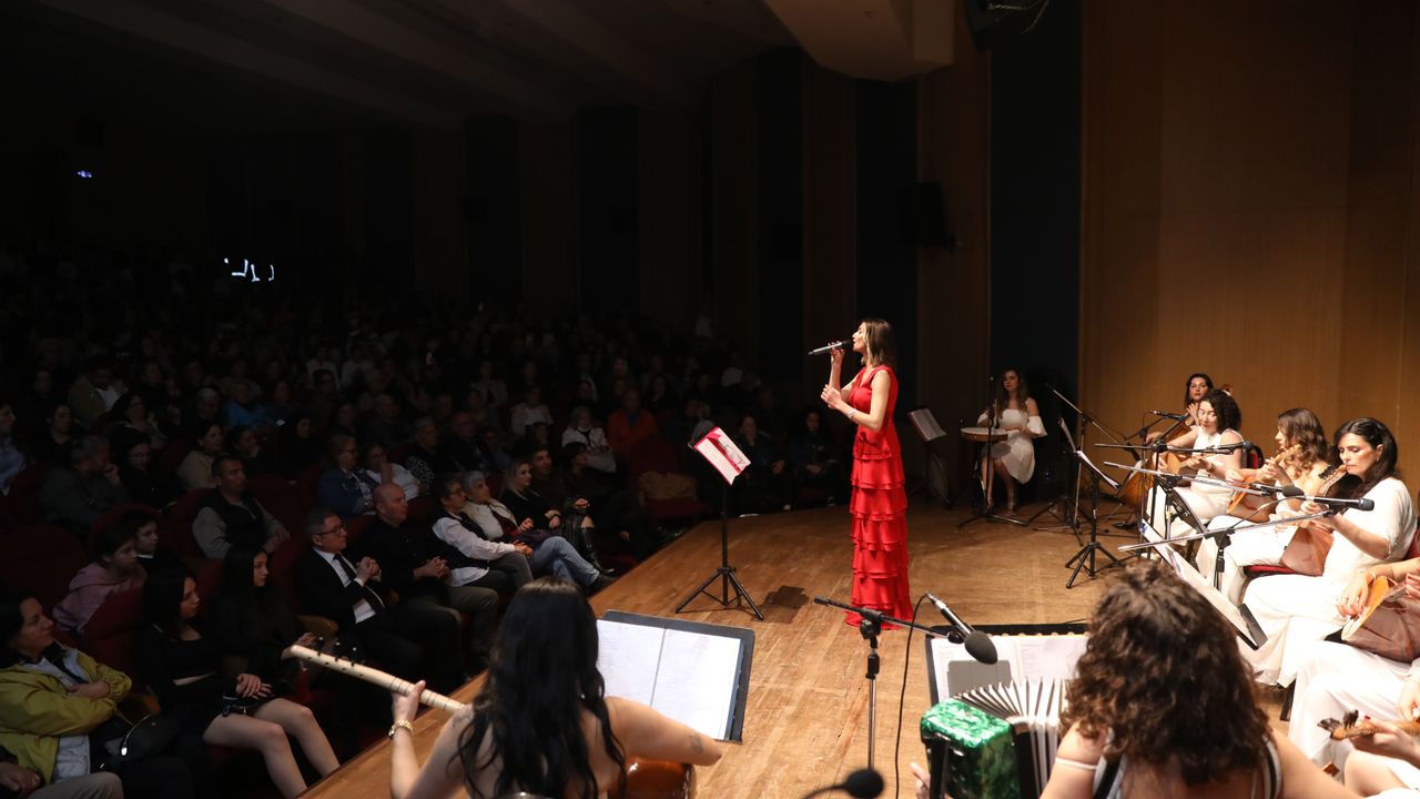 Konserin konuk sanatçısı Merve Kalay ise sahnedeki performansıyla geceye renk kattı. Merve Kalay, 'Yüce Dağ Başında Kar Boran Boran', 'Bu Dağlar Kömürdür' ve 'Mendilimin Ucuna Sakız Bağladım' gibi eserleri seslendirdi. Konser sonunda kadın sanatçılar ayakta alkışlandı.